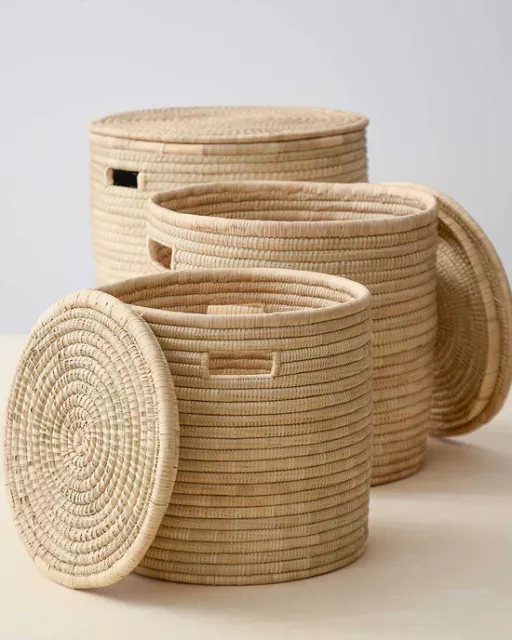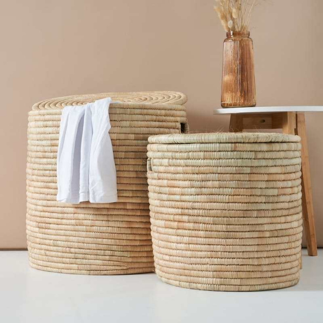 Traditional Laundry Baskets are handmade in the beautifully complex design of rattan/palm leave strips ingeniously held together to create a one of a kind piece. The Weaver Baskets are the perfect choice to effortlessly upgrade your bathroom or home.